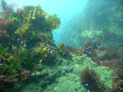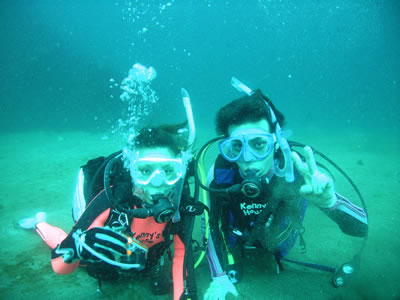 タンクを背負って潜り、お魚とたっぷり遊びましょう。 |